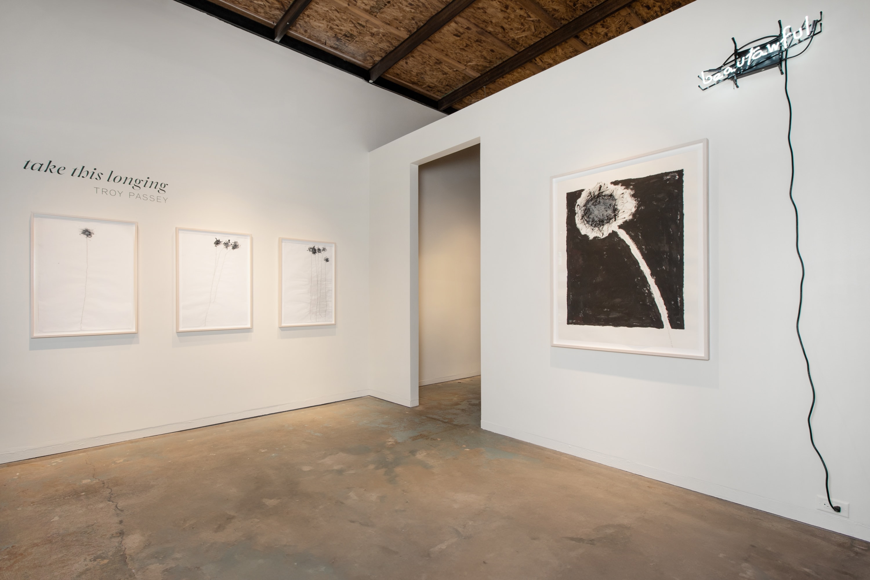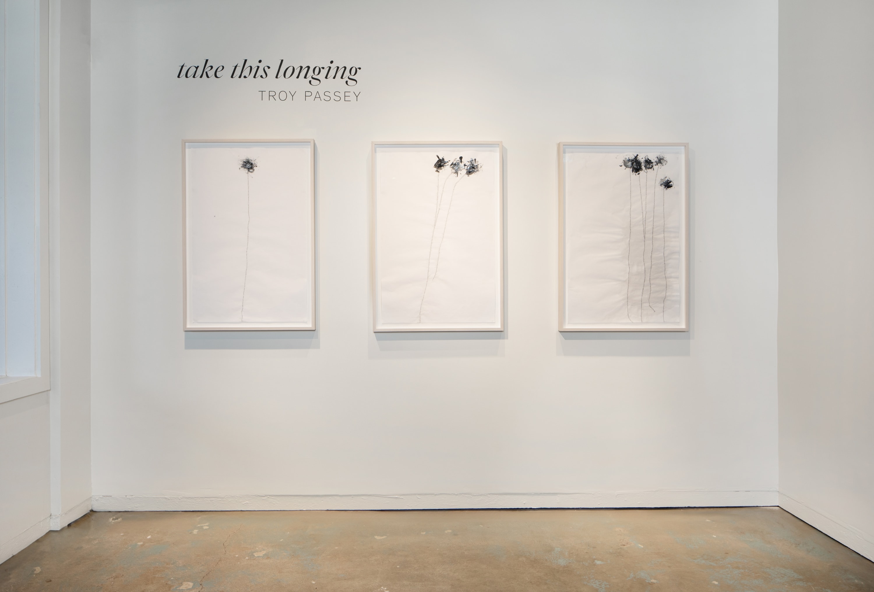 Troy Passey is an interdisciplinary artist who merges idea with image in his text-based art. He creates conceptual pieces through playful, elemental compositions that utilize words as a visual–in addition to a written–language. In these works, words operate in many ways; some words or phrases become figurative, emerging as horizon lines or objects themselves, while others whimsically name, or intuitively explain and narrate the objects drawn by Passey. He considers the titles of his works the key texts to be read, crediting writers ranging from Emily Dickinson to Leonard Cohen, from Rainer Maria Rilke to Robert Frost, to The Cure.