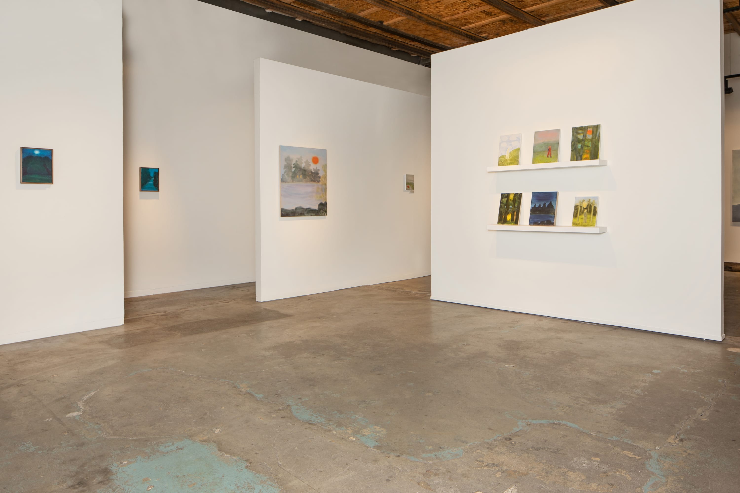 The artist spends her life painting and walking, though the two are nearly indistinguishable. “I’m always painting. I paint through everything. I paint where I am,” Lynch says. Last summer, the artist received a coveted invitation to return to Skowhegan School of Painting and Sculpture as an alumnus (’91), which provided the inspiration for many of the paintings on view. Walking along the shores of Lake Wesserunsett, she not only retraced the footsteps of countless painters, sculptors and artists who have attended the prestigious program as alumni and faculty, Alex Katz, Diana al-Hadid and Helen Frankenthaler among them. She also captures that unspoken, universal feeling of human-in-nature in paint.