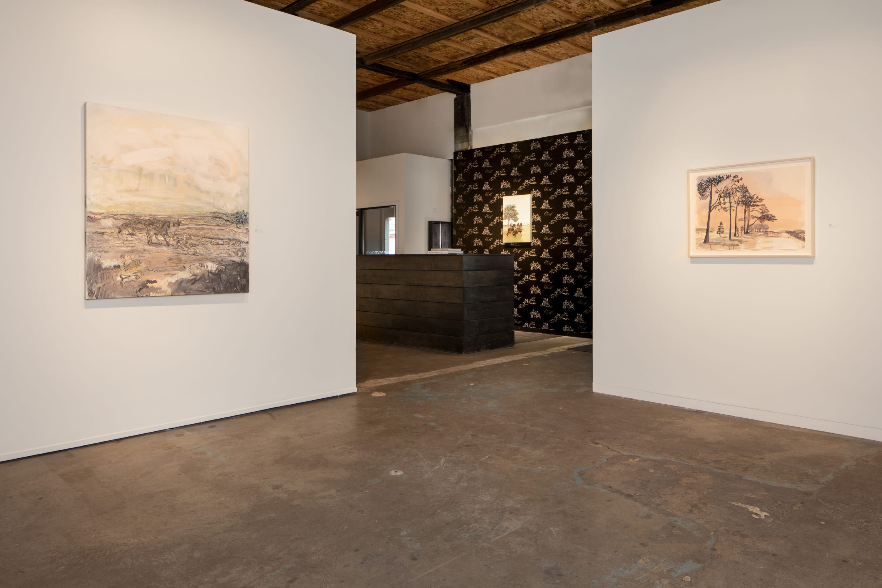 Fading Landscape, an exhibition of paintings by American artist Suzy Spence, presents a range of work completed over the last two years, from near-monumental-scale landscapes on canvas to intimate works on paper and painterly portraiture. Additionally, the exhibition introduces the artist’s hand-printed, equestrian neo-toile wallpaper, produced this year in collaboration with historic Red Disk Studios in Buffalo, New York.