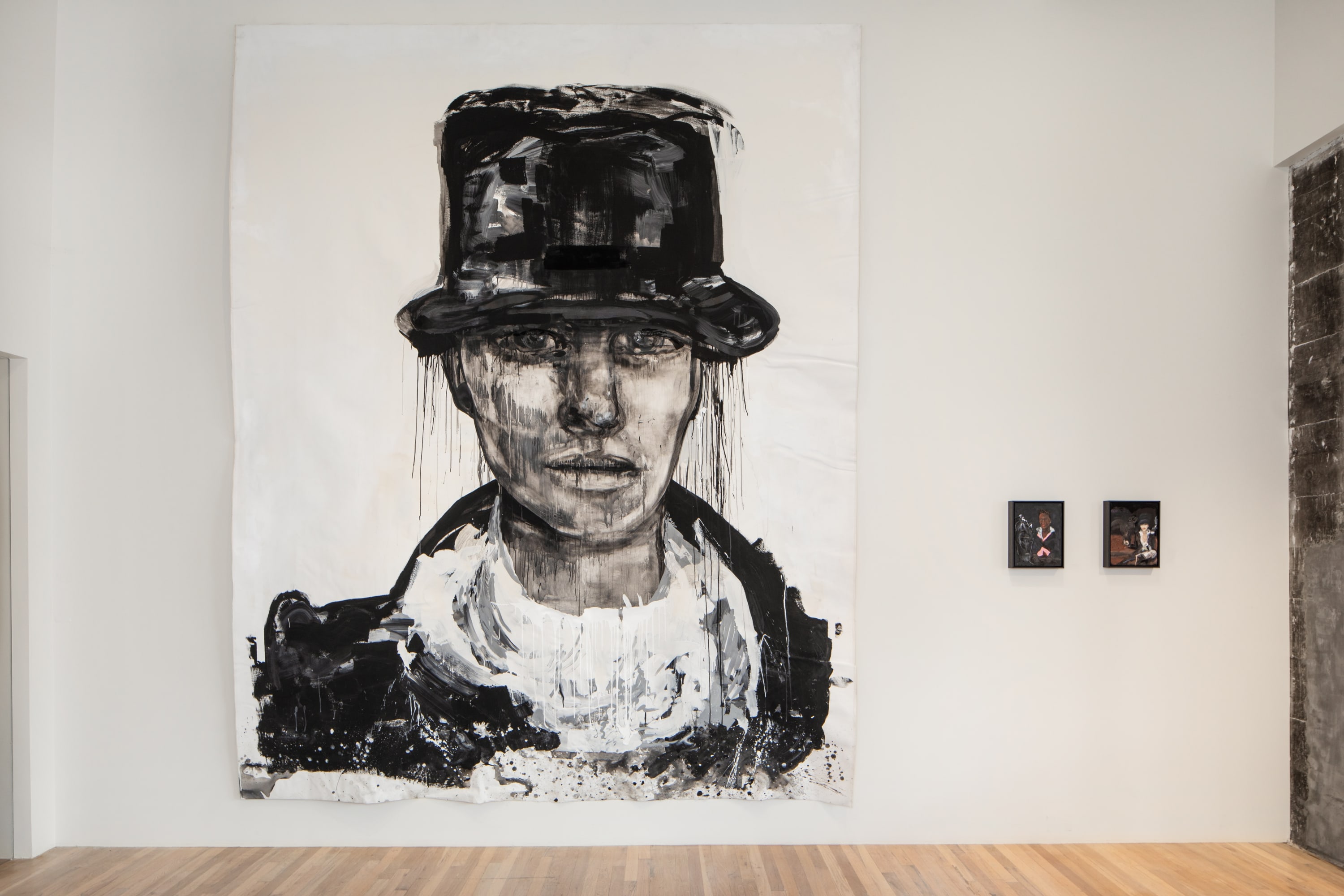 Mining society portraiture, political imagery, equestrian sporting paintings, and contemporary fashion photography, Spence evokes an air of female defiance and haughty sensitivities that feel alive and ghostly all at once. A sea of fresh female faces stare directly into the eyes of the viewer, intimating intense individuality and a sense of another time and place, while also of the immediate now. Inky streaks of deep black build intimate portraits of unknown women: powerful, raw, and dressed to the nines, with the playful symbology of whips and tall boots. These females are armed with sultry stares of near military strength.
